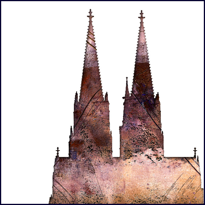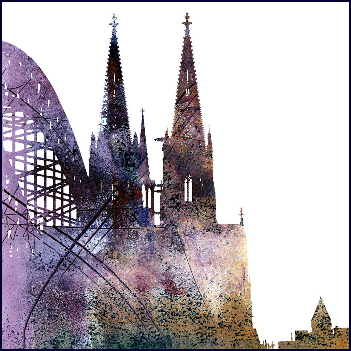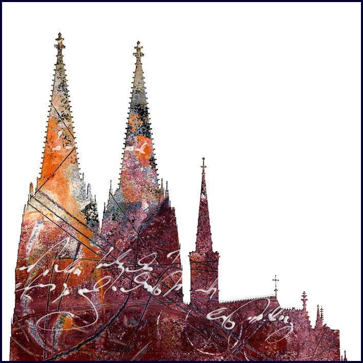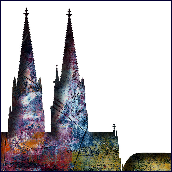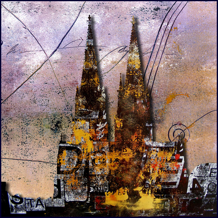 DOM VIII Mischtechnik, Leinwand, 90 x 90 cm Der Kölner Dom ist eine katholische Kirche und steht unter dem Patronat des Heiligen Petrus und der Gottesmutter Maria. |